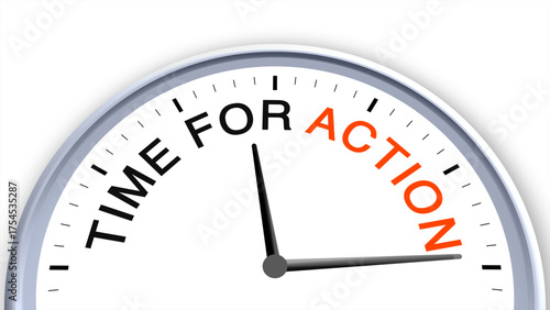 Time for action concept illustrated on a clock, symbolizing urgency, motivation, productivity, task management, and schedule, with a clean minimal illustrative design