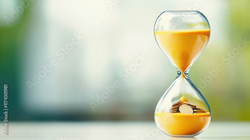 Time Management, Hourglass filled with coins, symbolizing time and wealth, captures attention
