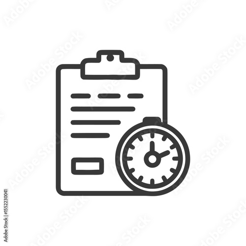 Time Management Icon: Checklist and Stopwatch in Minimalist Line Art Style