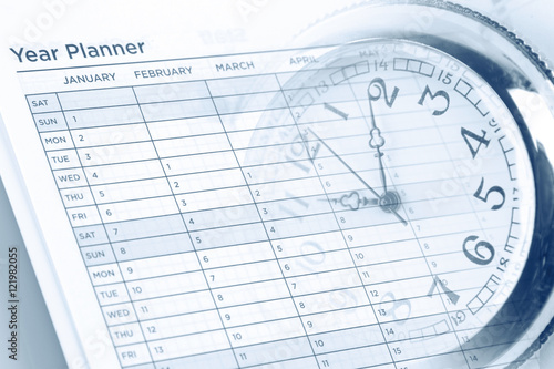 Time management. Watch on year planner