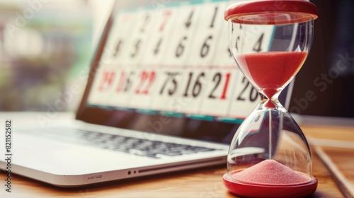Time ticking away with sand hourglass on a calendar, setting deadline urgency