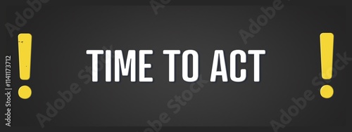 Time to Act. A blackboard with white text. Illustration with grunge text style.