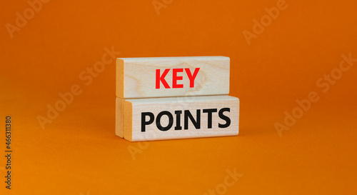 Time to key points symbol. Concept words Key points on wooden blocks on a beautiful orange background. Business and time to key points concept. Copy space.