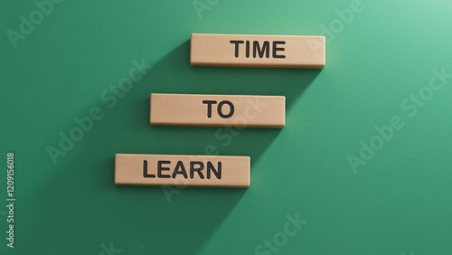 Time to learn symbol. Wooden blocks with words Time to learn.Business and Time to learn concept. Wooden cube blocks. Copy space.3D rendering on green background.