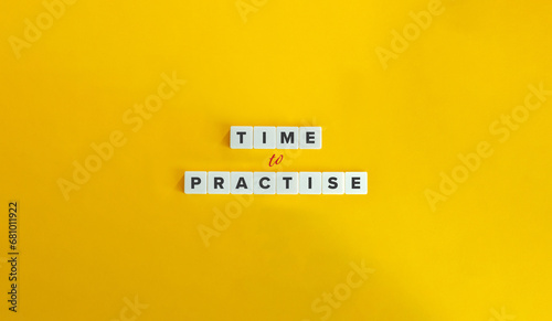 Time to Practise Phrase on Letter Tiles on Yellow Background. Minimal Aesthetic.