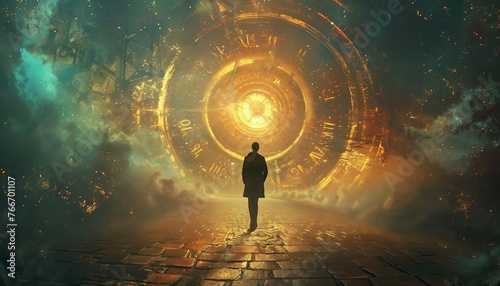 Time Traveler's Dilemma, Evoke contemplation with an image showing a time traveler facing moral or existential dilemmas, AI