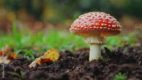 Time-lapse of a mushroom growing from the ground, natural growth process Generative AI
