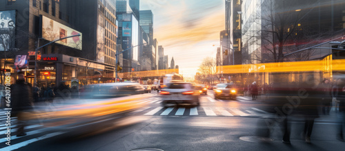 timelapse of daylight busy urban downtown city crowd people commuter transportation intersection street motion people and car taxi strret scene pedestrian city people lifestyle,ai generate