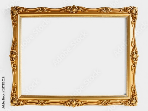 Timeless gold picture frame adorned with intricate designs against a simple white surface, decor, gold