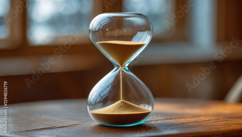 Timer in an hourglass form on a wooden table