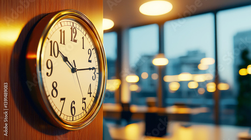 Time's Embrace: A close-up shot of an antique clock with golden rims and a classic face, mounted on a wooden wall, capturing a sense of the passing time.