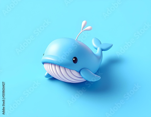Tiny 3D Blue Whale Emoji Icon Centered on Canvas