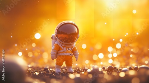 Tiny Astronaut Golden Sunset Adventure Space Exploration Journey
