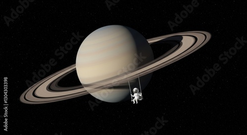 Tiny Astronaut on Saturn's Rings Swing
