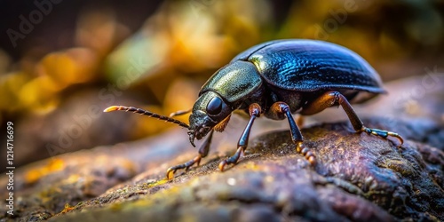 Tiny Beetle Crawling on a Rocky Surface, Close-up Macro Food Photography