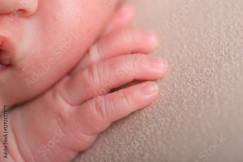 Tiny newborn baby human hands and fingers
