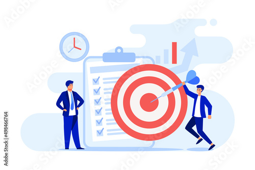 Tiny people developing self control system isolated flat vector illustration. Metaphor of target and goal achievement for productive work. Time management and development concept