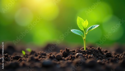 Tiny sprout emerging from soil, symbol of new life and environmental awareness Earth Day theme , flora, wildlife