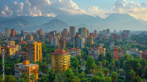 Tirana, Albania city skyline created with Generative AI technology