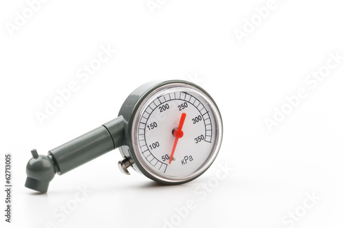 Tire pressure gauge isolated white background