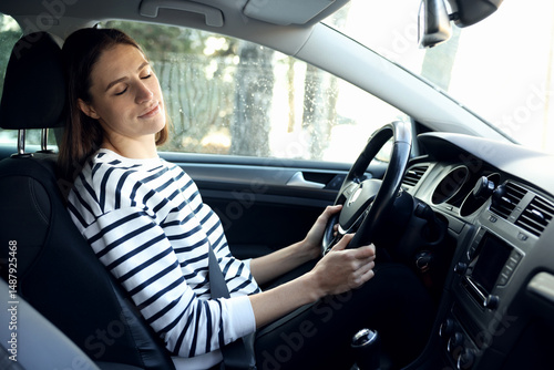 Tired driver sleeping in her modern car