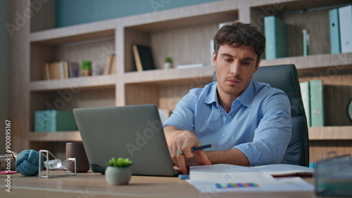 Tired manager solving problem in contemporary office. Stressed man throw papers