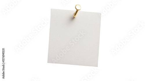 Title: Minimal White Note Pinned with Elegant Gold Pin Isolated on Bright White Background for Clean Presentation Design