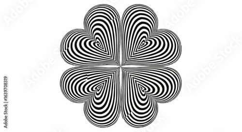 Title Design four hearts swirl rotation illusion background. Abstract striped distortion twisted backdrop. Vector-art illustration stock