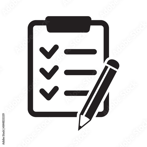 To do list icon. Clipboard with pencil vector icon. Black illustration isolated on white background for graphic and web design.