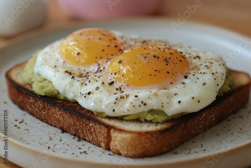 Toasted bread topped with egg on a plate.