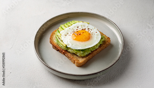 Toasted bread with avocado and fried egg. Delicious and healthy sandwich. Cooking and culinary