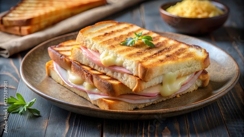 Toasted Croque Monsieur on a plate , food, grilled bread