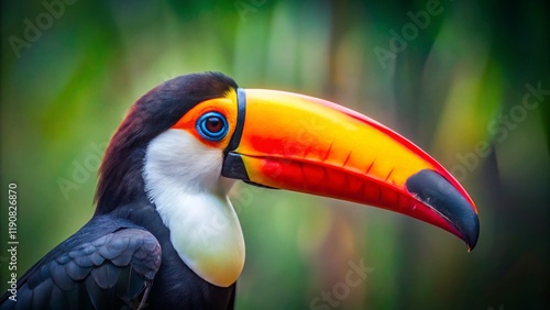 Toco Toucan Minimalist Portrait: Vibrant Bird in South American Rainforest