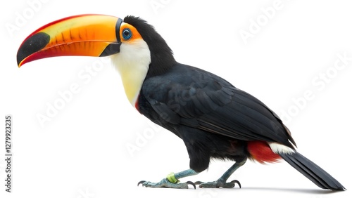 Toco Toucan Profile, Vibrant Bird Isolated on White