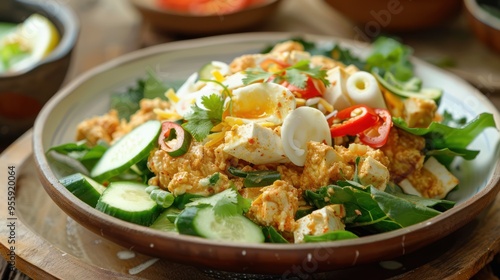 Tofu, Cucumber, and Egg Salad with Chili and Cilantro