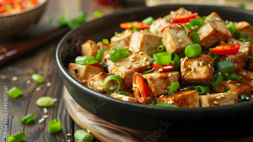 Tofu with Sesame Seeds and Green Onions - Food Photography