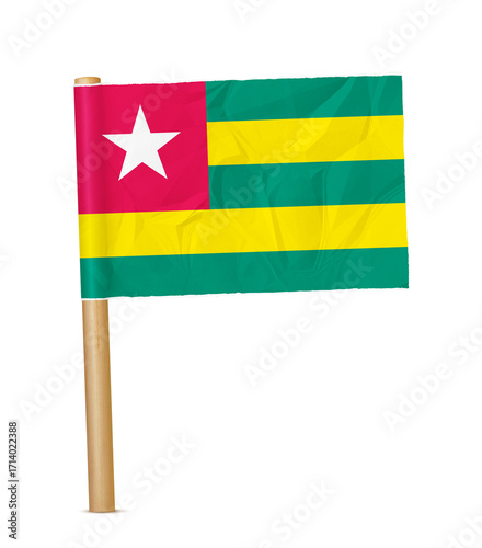 Togo paper flag with wooden pole realistic 3d illustration. Hand flag of Togo transparation png