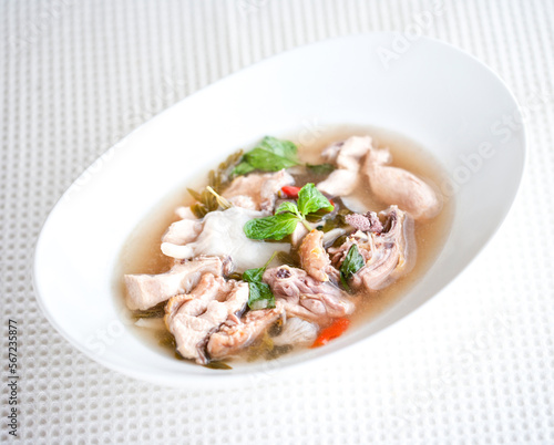 Tom Yum Chicken with Mushroom Straw on a White Bowl - selective focus