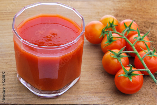 Tomato juice and cherry tomatoes on the vine