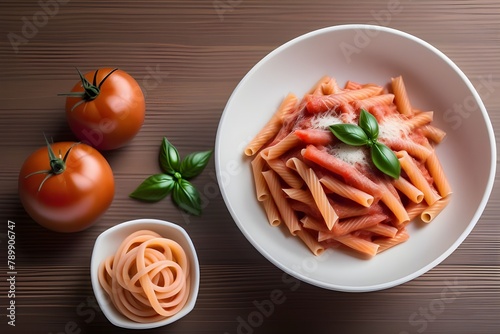 tomato pasta in the white bowl