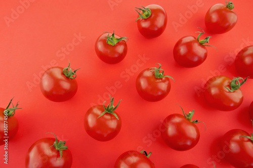 Tomato pattern. Tomato background. Red ripe tomatoes on a red background. Tomatoes season vegetables. Farm organic vegetables
