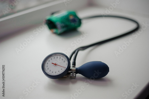 Tonometer on a white background. Diagnostic device for determining blood pressure and pulse rate