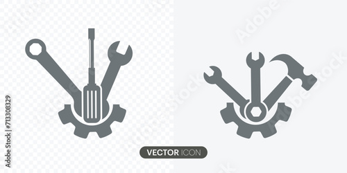 Tools and Service icons set.Settings and repair, Crossed wrench tool with screwdriver vector icon set.,Tools icon isolated on gray and transparent background. vector illustration