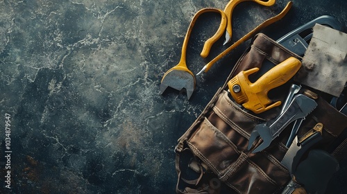 tools in tool belt. Space for text.