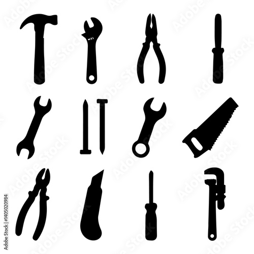 Tools silhouettes collection. Tool icon set. Working Tools icons.