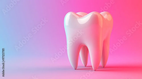 Tooth Icon with Bold Colorful Background Shapes in Modern Minimal Design
