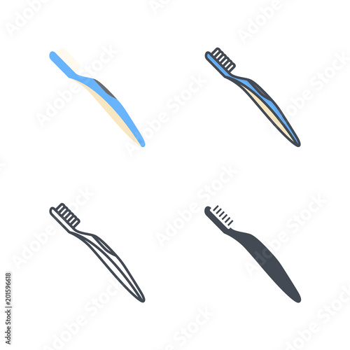 Toothbrush medicine medical flat colored silhouette line icon vector