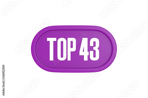 Top 43 sign in purple color isolated on white background, 3d illustration.