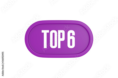 Top 6 sign in purple color isolated on white background, 3d illustration.