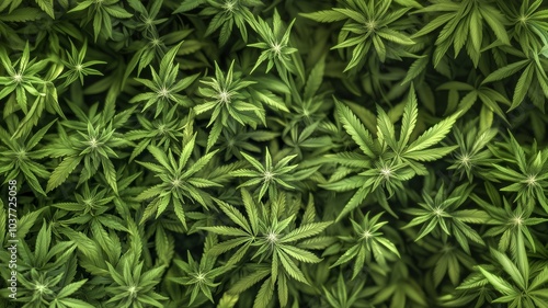 Top Angle of Cannabis Plants with Lush Green Leaves in Natural Light